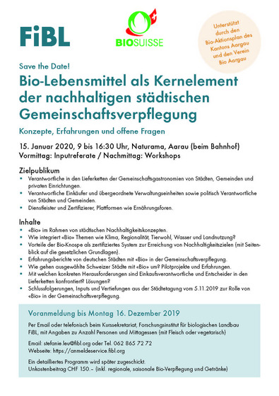 Schlussfolgerungen, Inputs und Vertiefungen aus der Städtetagung vom 5.11.2019 zur Rolle von «Bio» in der Gemeinschaftsverpflegung.