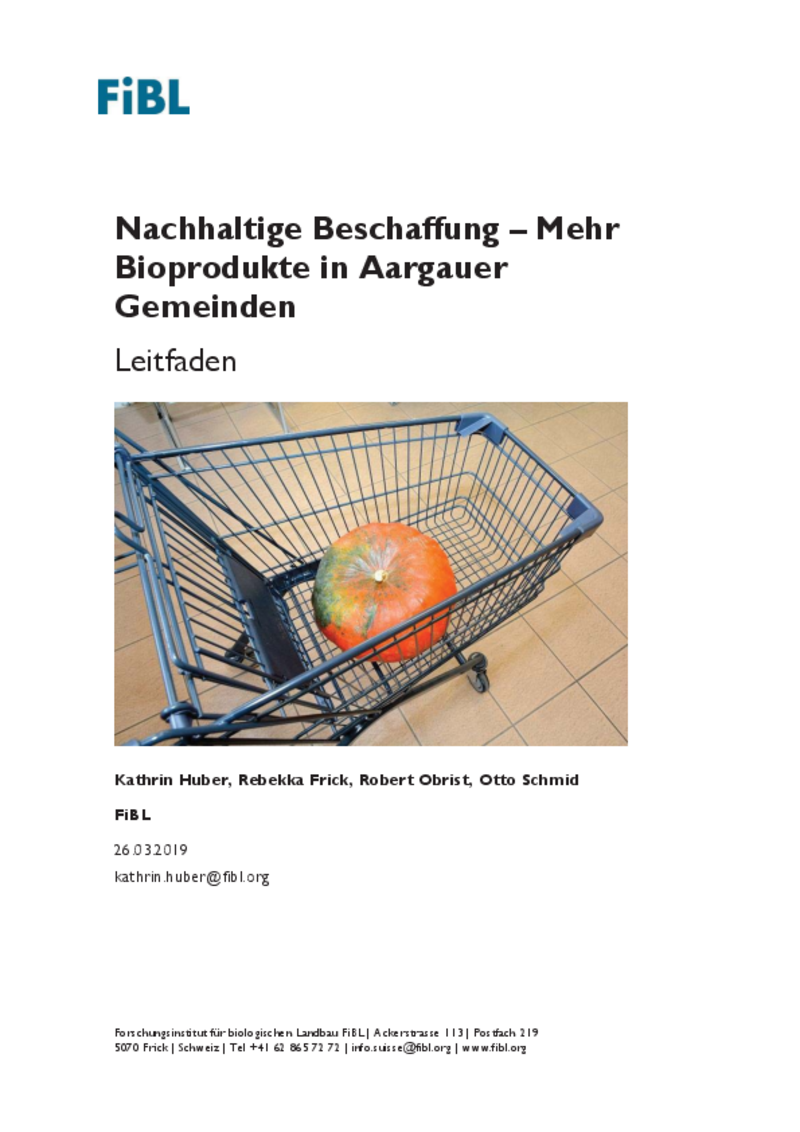 Der Leitfaden "Nachhaltige Beschaffung - Mehr Bioprodukte in Aargauer Gemeinden" hat den Zweck, Mitarbeiterinnen und Mitarbeitern von Beschaffungsstellen in Gemeinden des Kantons Aargau eine konkrete Hilfestellung anzubieten, um Nachhaltigkeitsaspekte bei der Beschaffung von Lebensmitteln und Verpflegungsdienstleistungen zu berücksichtigen. Er soll ausserdem aufzeigen, weshalb Biolebensmittel Bausteine einer nachhaltigen Beschaffungsstrategie sind.
